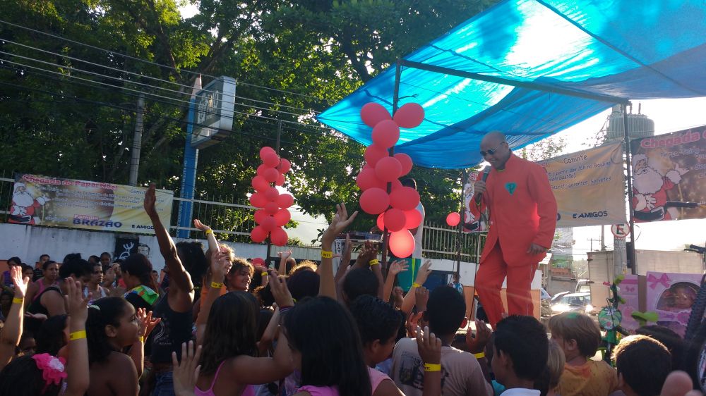 Pitchula com o vereador Brazão |  Pitchula no evento com o vereador Brazão na estrada da rio grande. |  Pitchula cantando e alegrando a garotada no evento do vereador brazão na estrada da rio grande. |